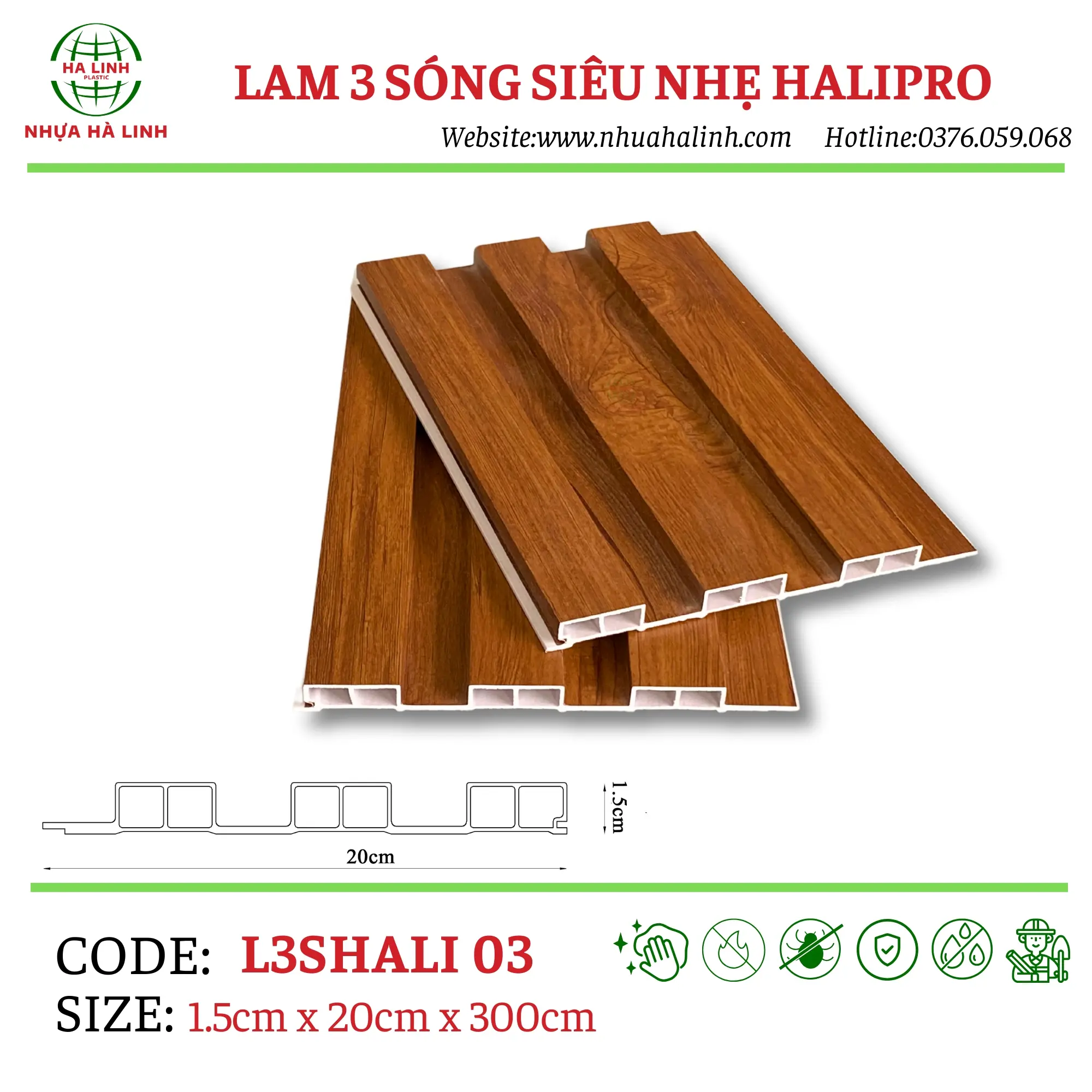 Để hiểu rõ hơn về từng sản phẩm tấm ốp lam 3 sóng của Công ty TNHH Sản Xuất Và Thương Mại Nhựa Hà Linh và đặc biệt là sản phẩm tấm ốp lam 3 sóng siêu nhẹ Halipro – L3SHALI 03. Quý khách hàng xin vui lòng liên hệ với Nhựa Hà Linh qua: