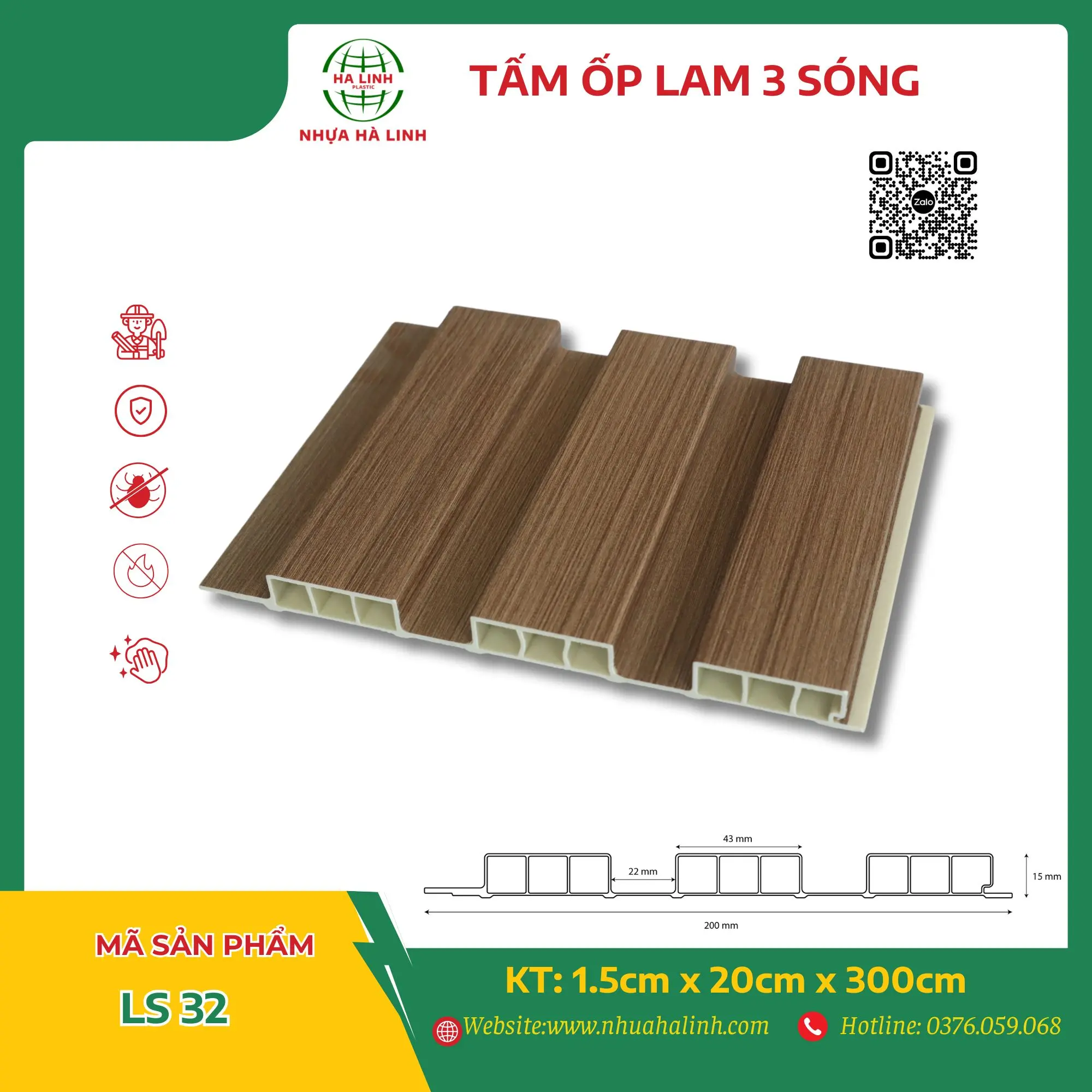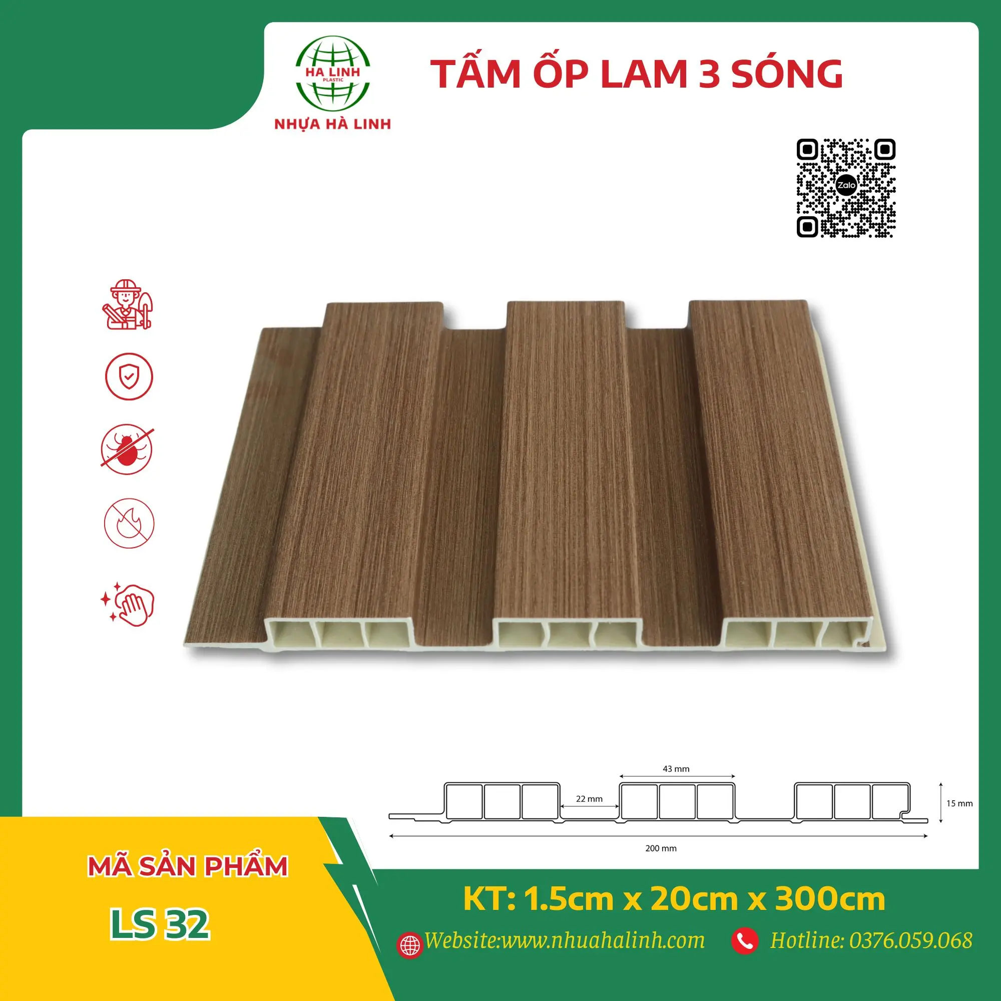 Để hiểu rõ hơn về từng sản phẩm tấm ốp trần tường của Công ty TNHH Sản Xuất Và Thương Mại Nhựa Hà Linh và đặc biệt là sản phẩm tấm ốp lam 3 sóng – LS 32. Quý khách hàng xin vui lòng liên hệ với Nhựa Hà Linh qua: