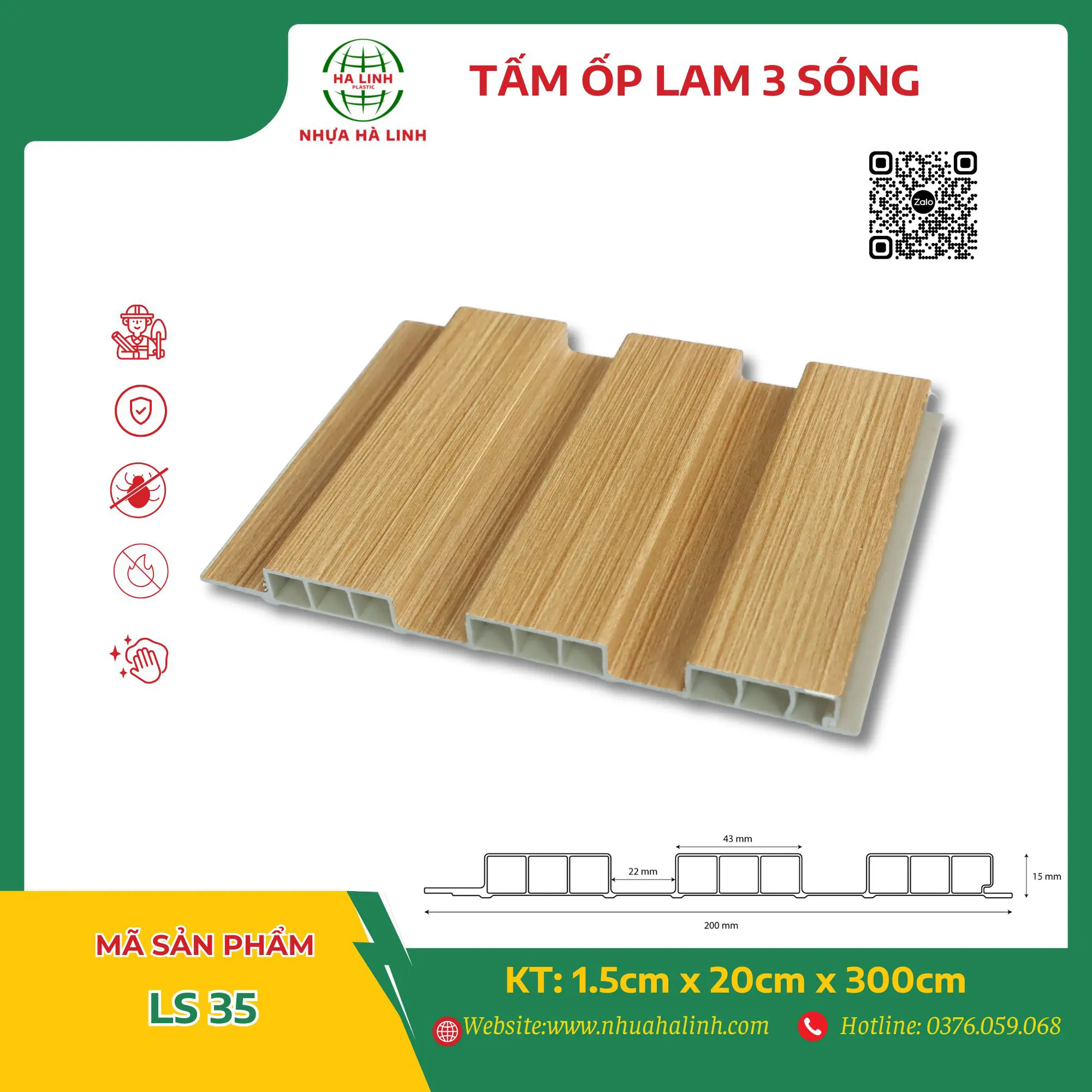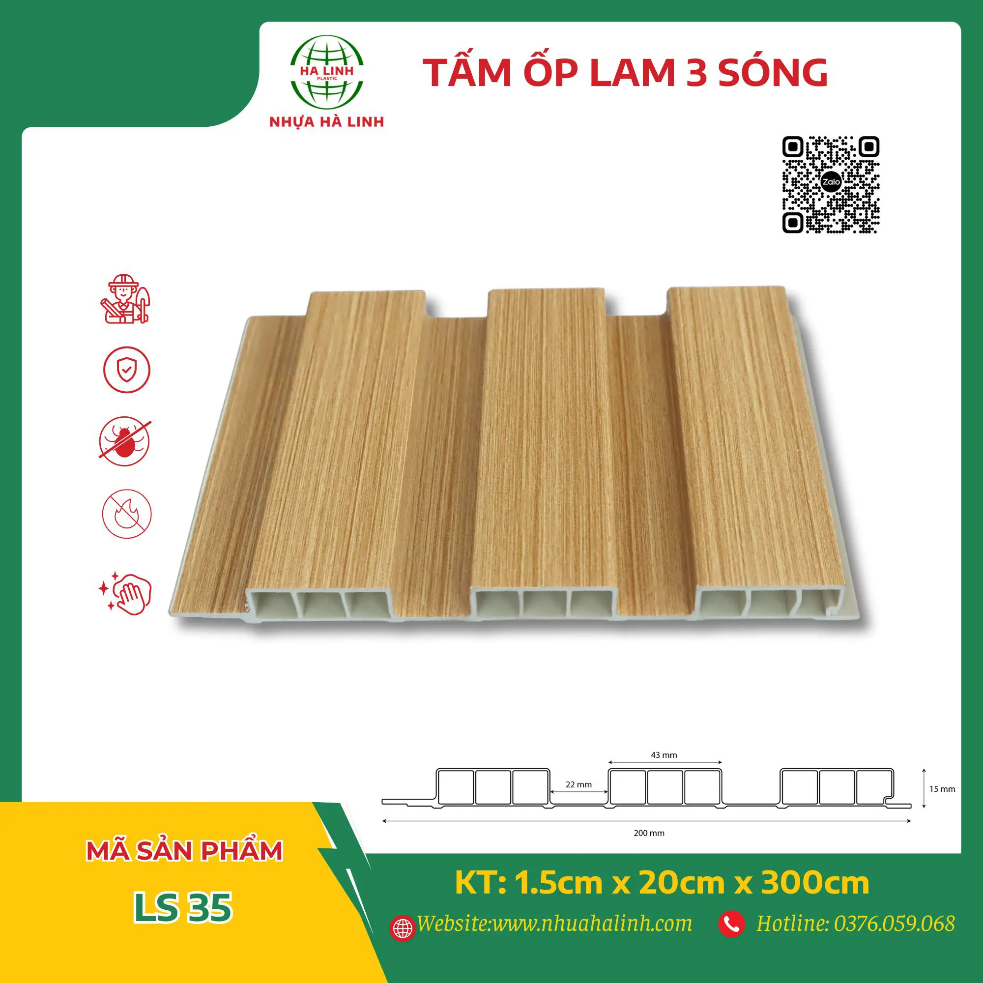 Để hiểu rõ hơn về từng sản phẩm tấm ốp trần tường của Công ty TNHH Sản Xuất Và Thương Mại Nhựa Hà Linh và đặc biệt là sản phẩm tấm ốp lam 3 sóng – LS 35. Quý khách hàng xin vui lòng liên hệ với Nhựa Hà Linh qua: