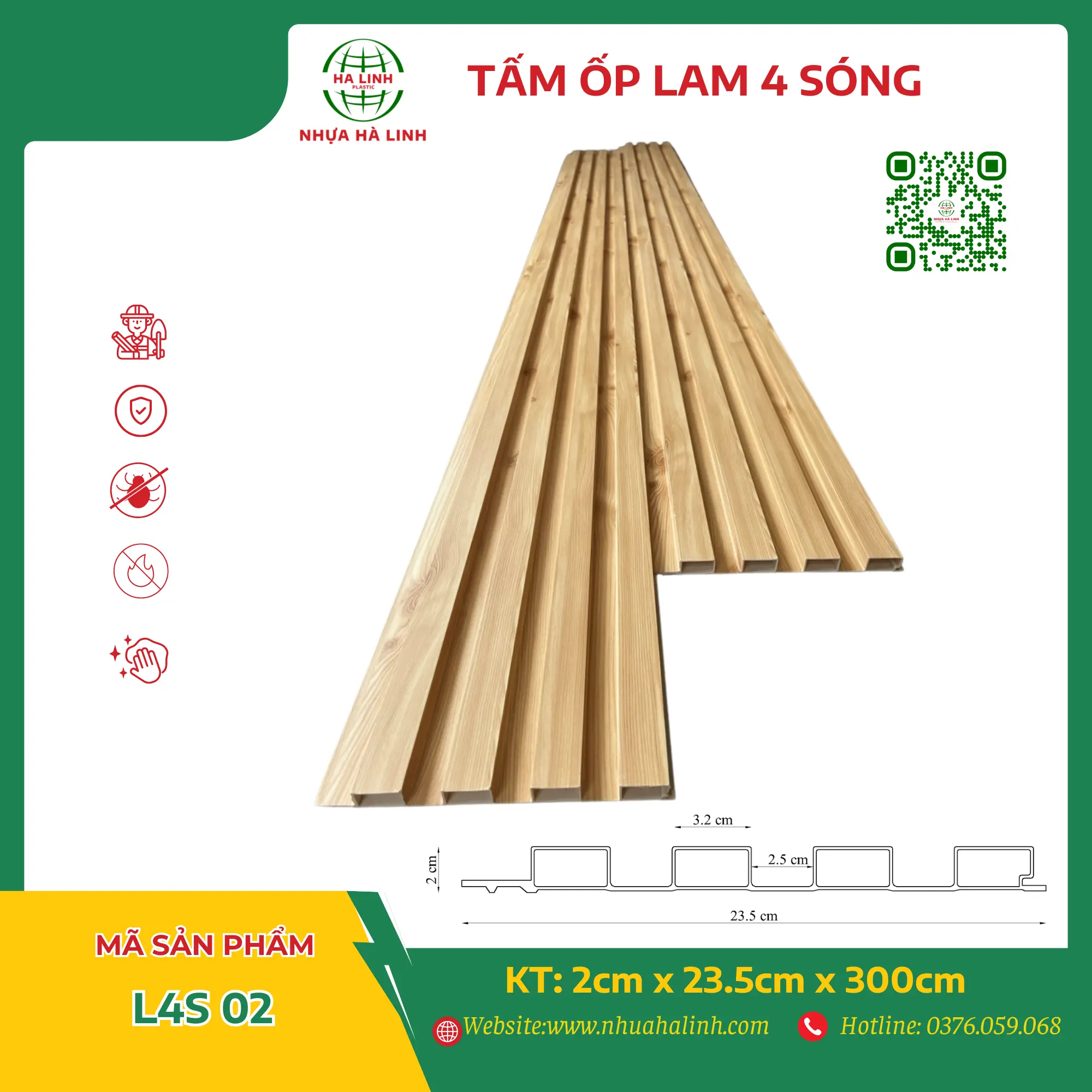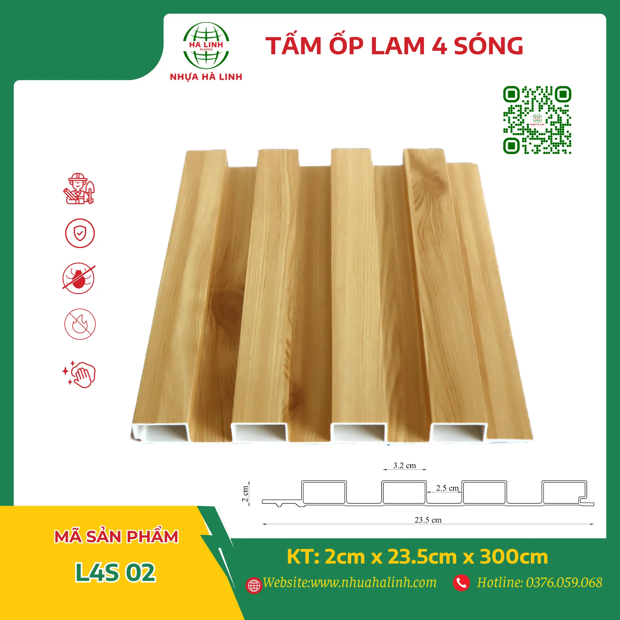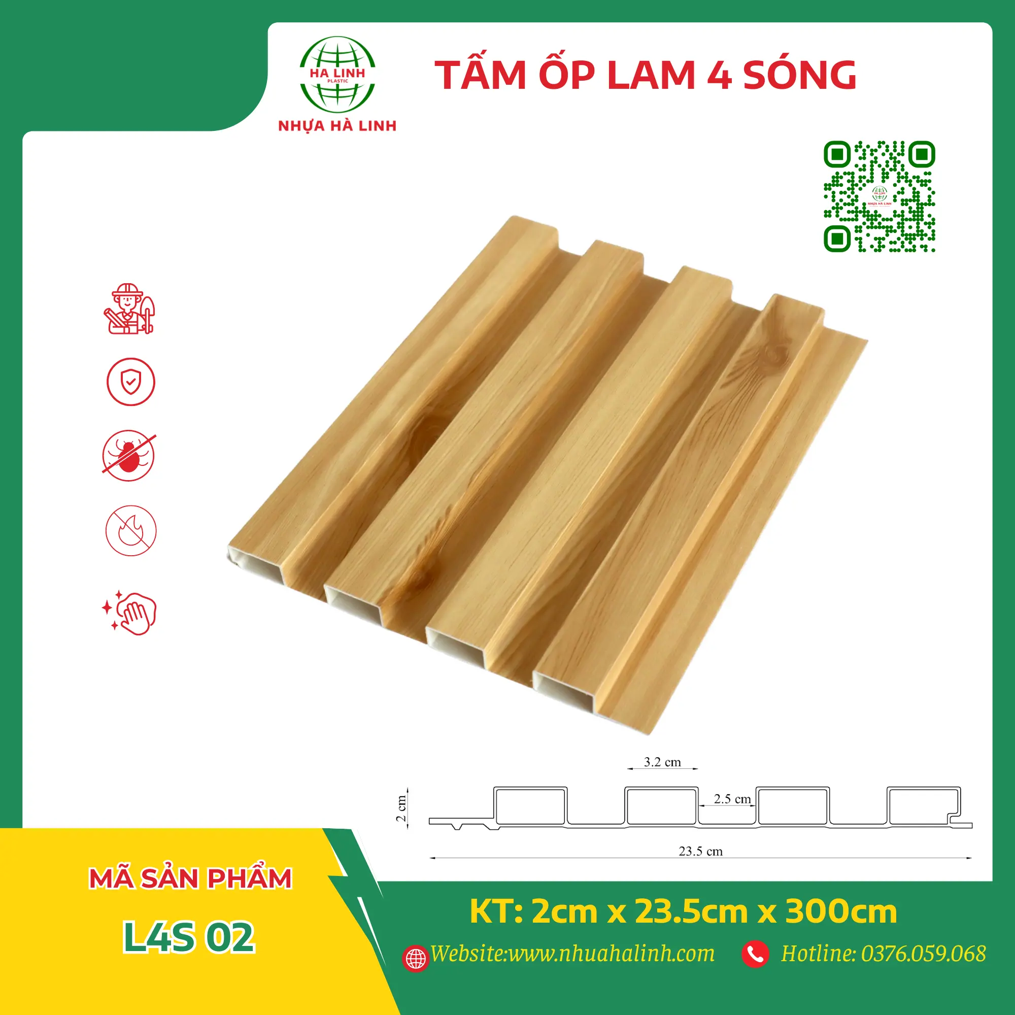 Để hiểu rõ hơn về từng sản phẩm tấm ốp trần tường của Công ty TNHH Sản Xuất Và Thương Mại Nhựa Hà Linh và đặc biệt là sản phẩm tấm ốp lam 4 sóng – L4S 02. Quý khách hàng xin vui lòng liên hệ với Nhựa Hà Linh qua:
