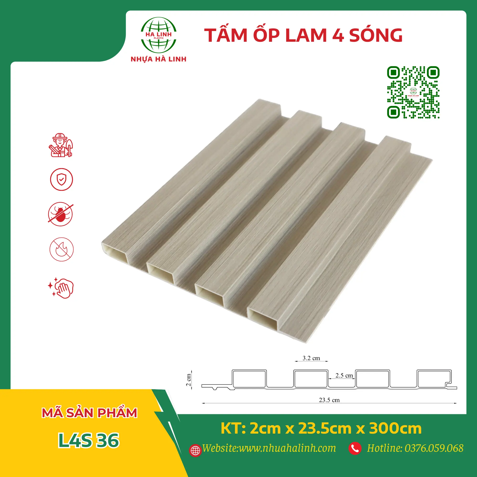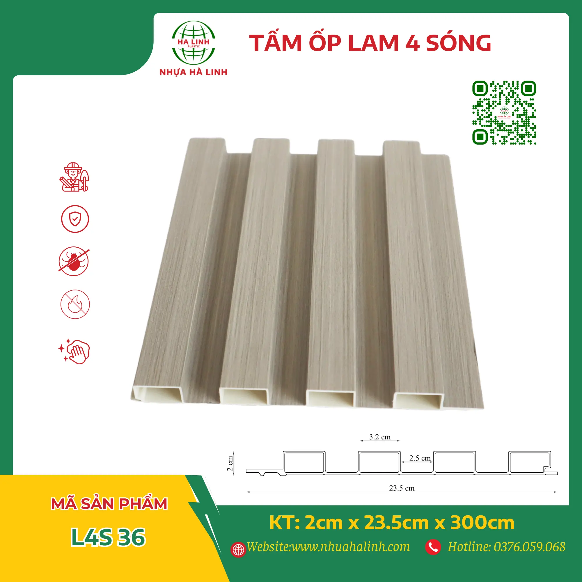 Để hiểu rõ hơn về từng sản phẩm tấm ốp trần tường của Công ty TNHH Sản Xuất Và Thương Mại Nhựa Hà Linh và đặc biệt là sản phẩm tấm ốp lam 4 sóng – L4S 36. Quý khách hàng xin vui lòng liên hệ với Nhựa Hà Linh qua: