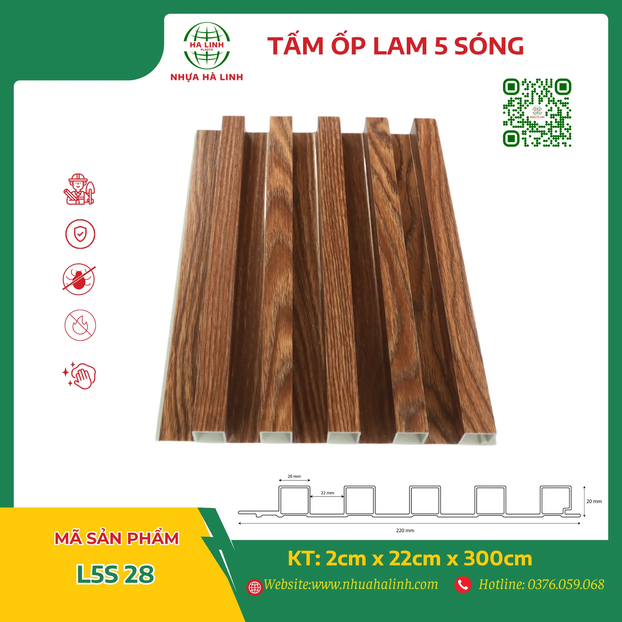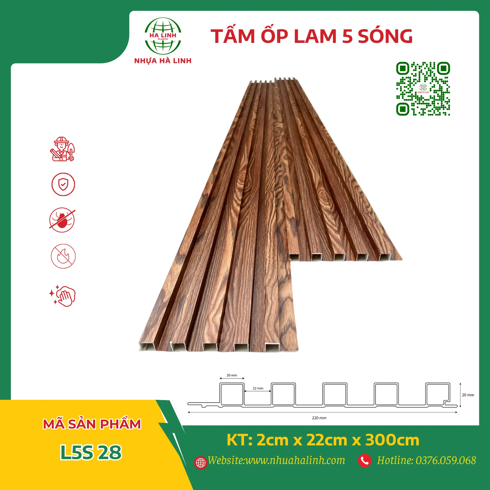Để hiểu rõ hơn về từng sản phẩm tấm ốp trần tường của Công ty TNHH Sản Xuất Và Thương Mại Nhựa Hà Linh và đặc biệt là sản phẩm tấm ốp lam 5 sóng – L5S 28. Quý khách hàng xin vui lòng liên hệ với Nhựa Hà Linh qua:
