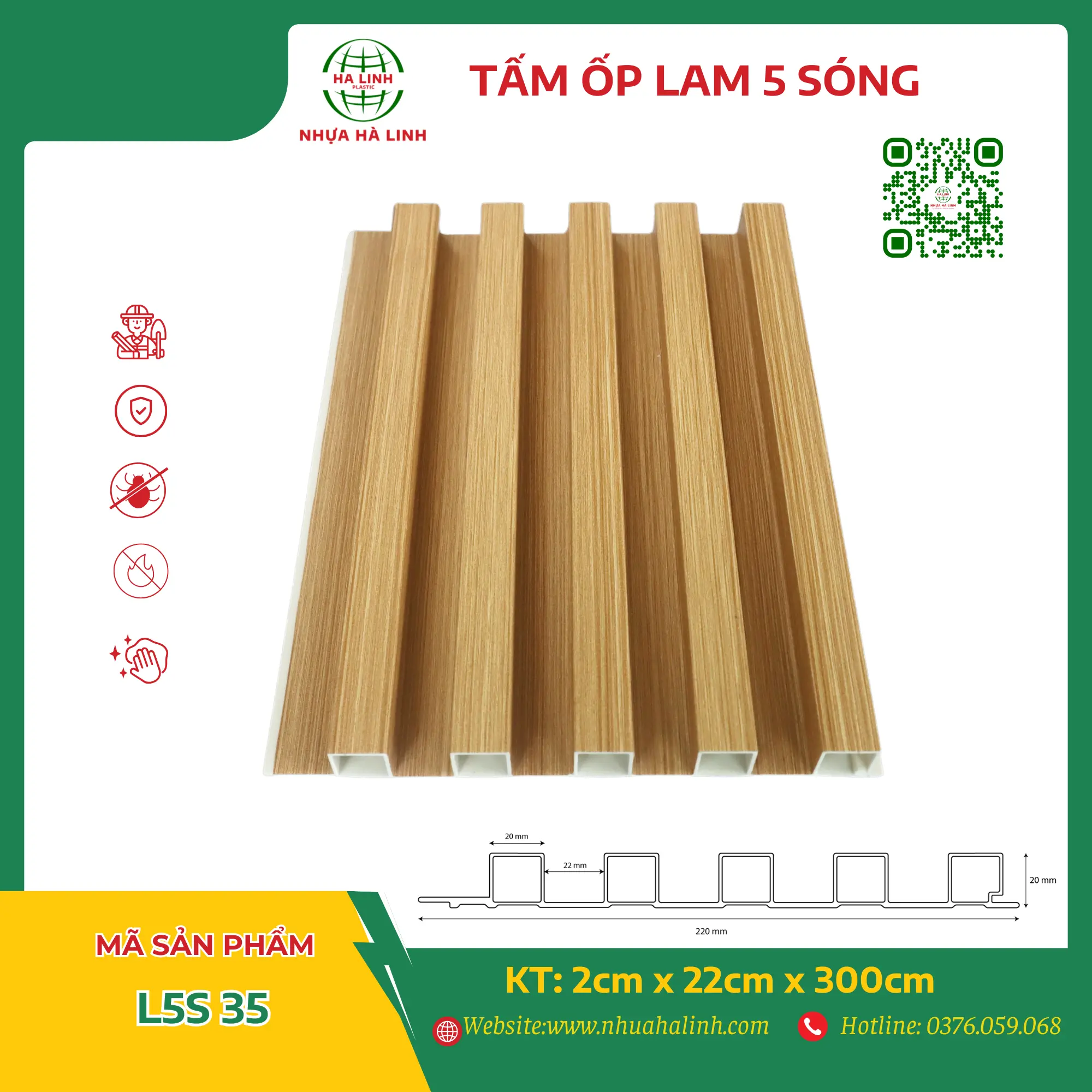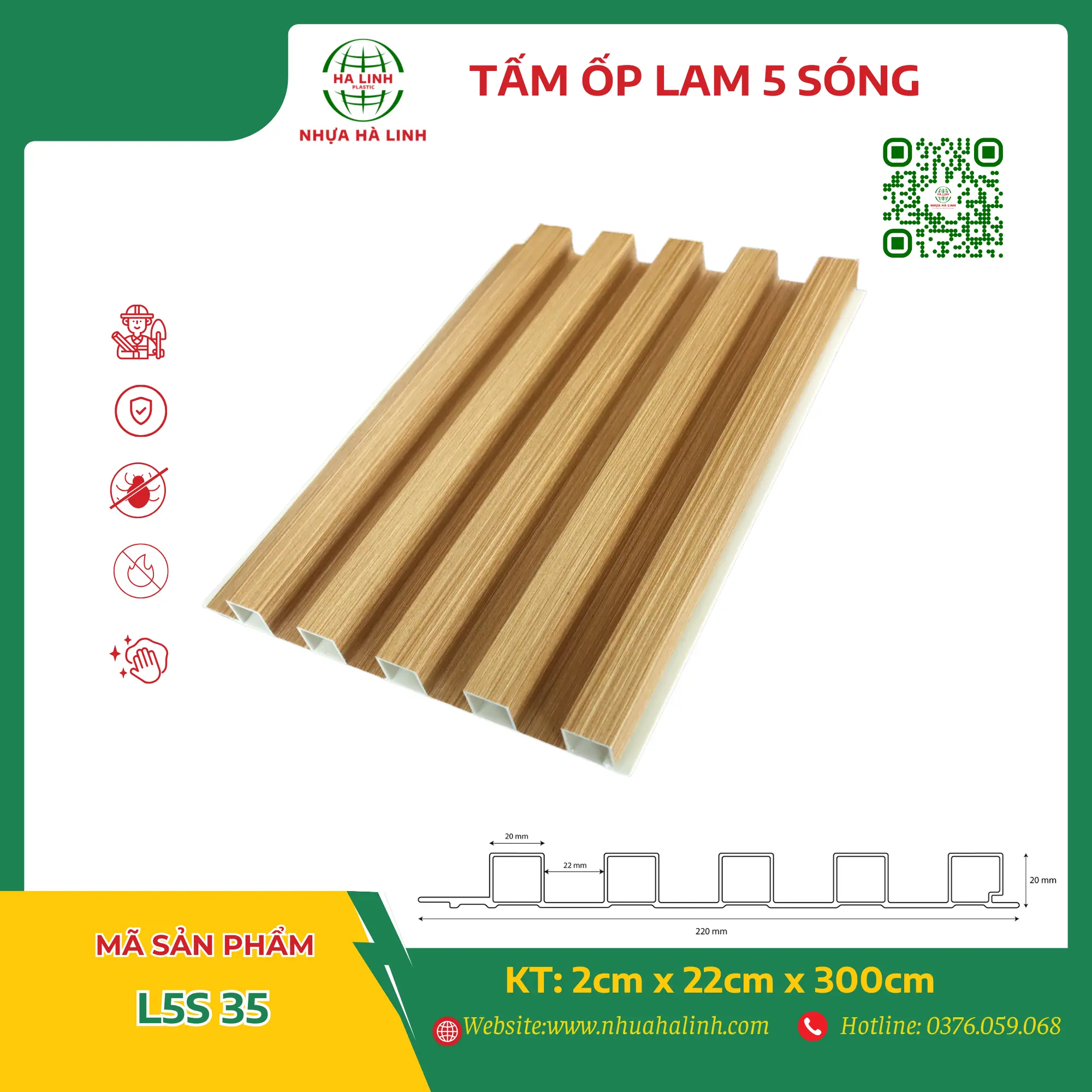 Để hiểu rõ hơn về từng sản phẩm tấm ốp trần tường của Công ty TNHH Sản Xuất Và Thương Mại Nhựa Hà Linh và đặc biệt là sản phẩm tấm ốp lam 5 sóng – L5S 35. Quý khách hàng xin vui lòng liên hệ với Nhựa Hà Linh qua: