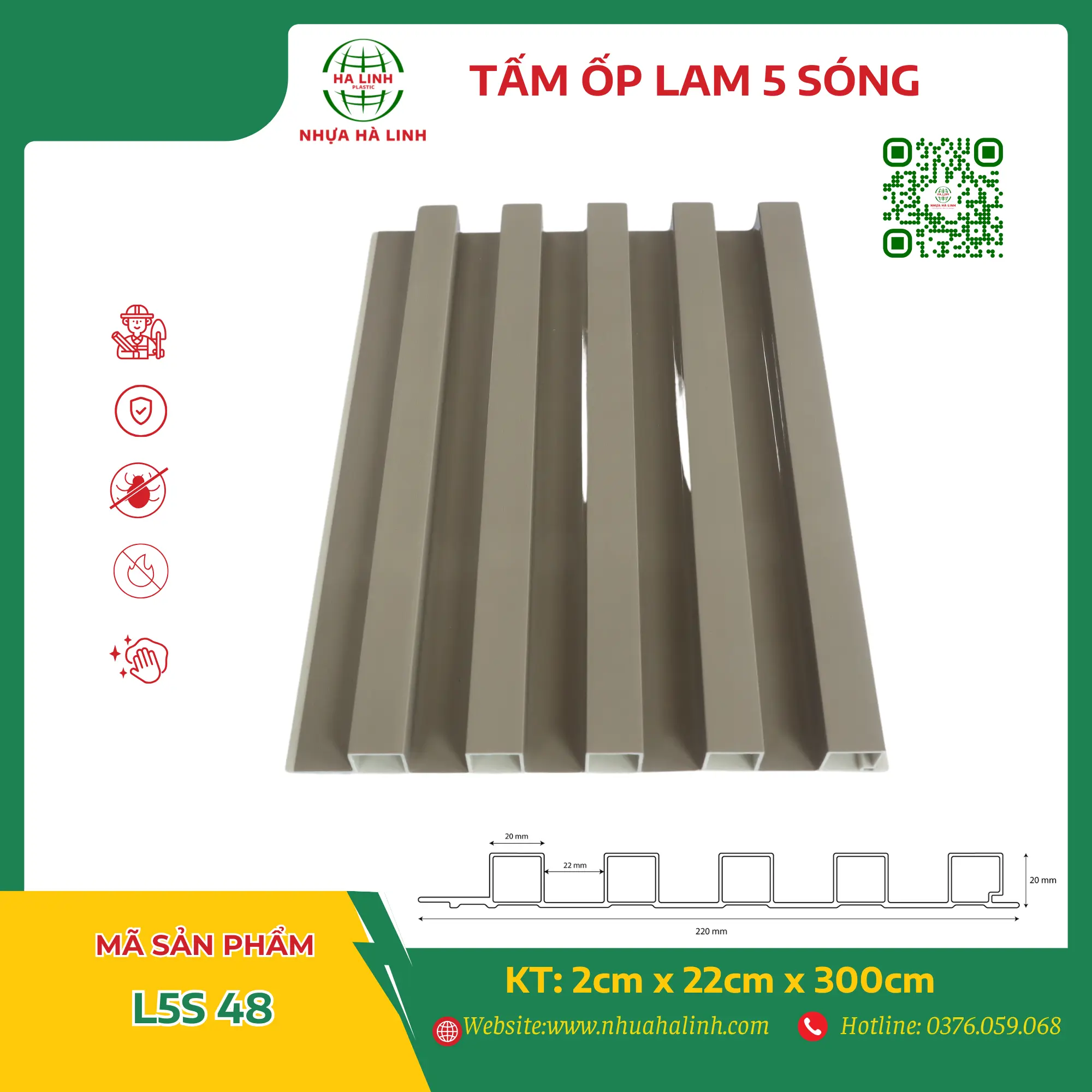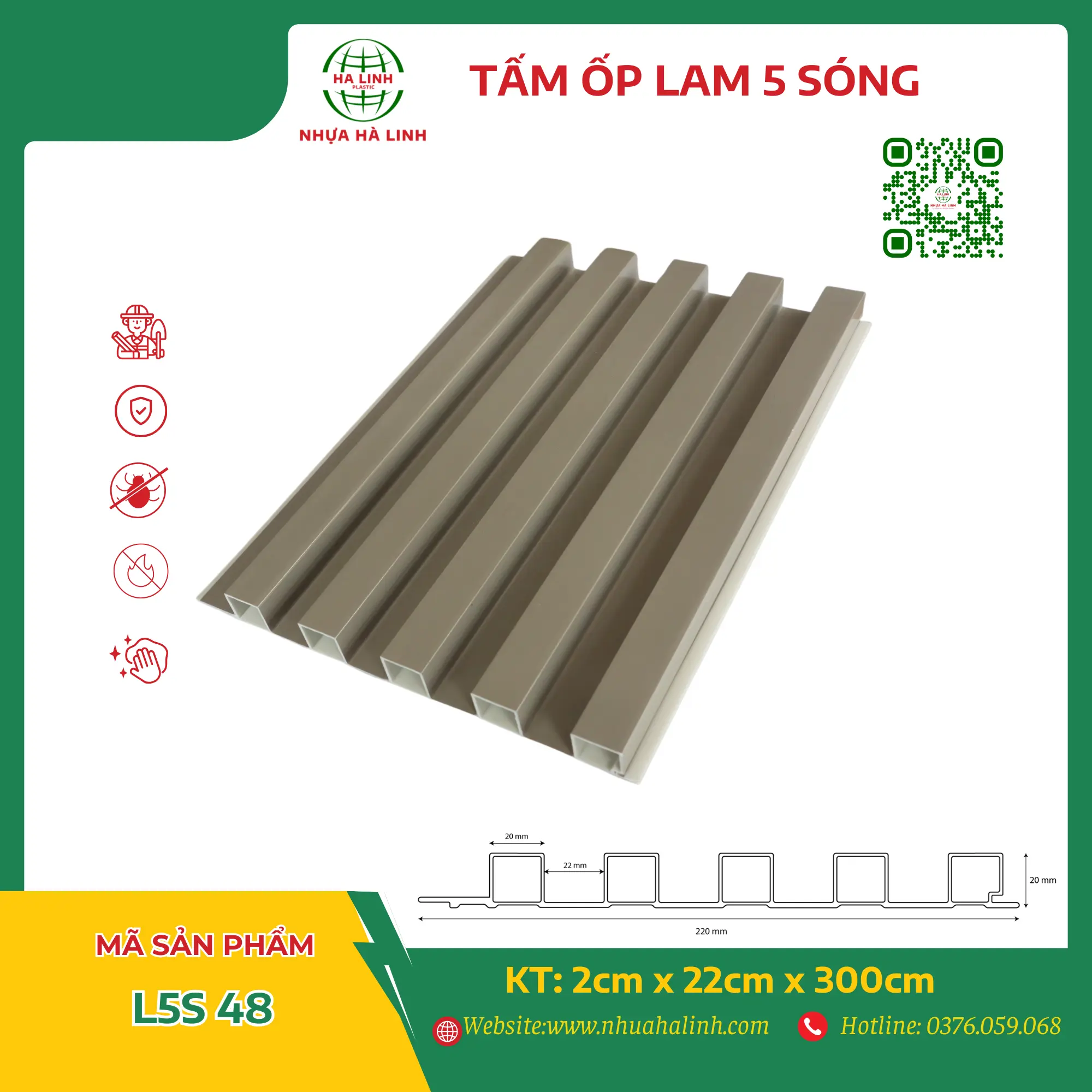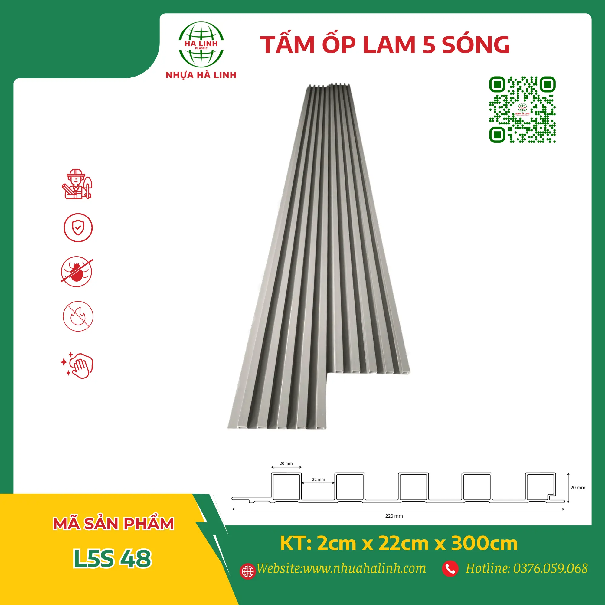 Để hiểu rõ hơn về từng sản phẩm tấm ốp trần tường của Công ty TNHH Sản Xuất Và Thương Mại Nhựa Hà Linh và đặc biệt là sản phẩm tấm ốp lam 5 sóng – L5S 48. Quý khách hàng xin vui lòng liên hệ với Nhựa Hà Linh qua: