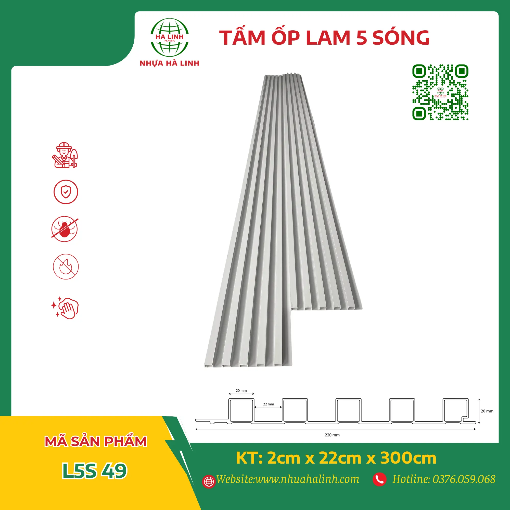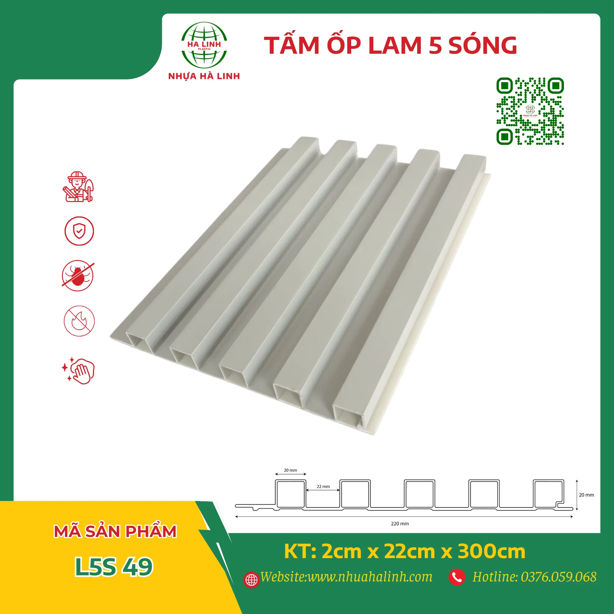 Để hiểu rõ hơn về từng sản phẩm tấm ốp trần tường của Công ty TNHH Sản Xuất Và Thương Mại Nhựa Hà Linh và đặc biệt là sản phẩm tấm ốp lam 5 sóng – L5S 49. Quý khách hàng xin vui lòng liên hệ với Nhựa Hà Linh qua: