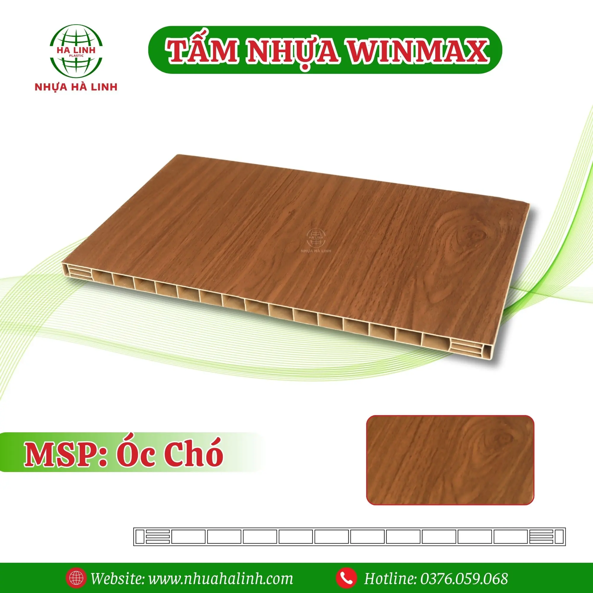 Tấm nhựa Winmax – Óc Chó là sản phẩm cao cấp thuộc dòng nhựa Winmax của Nhựa Hà Linh, được sản xuất từ nhựa PVC nguyên sinh kết hợp công nghệ ép định hình hiện đại. Bề mặt sản phẩm mô phỏng tinh tế vân gỗ tự nhiên, tạo cảm giác ấm áp và sang trọng cho mọi không gian.