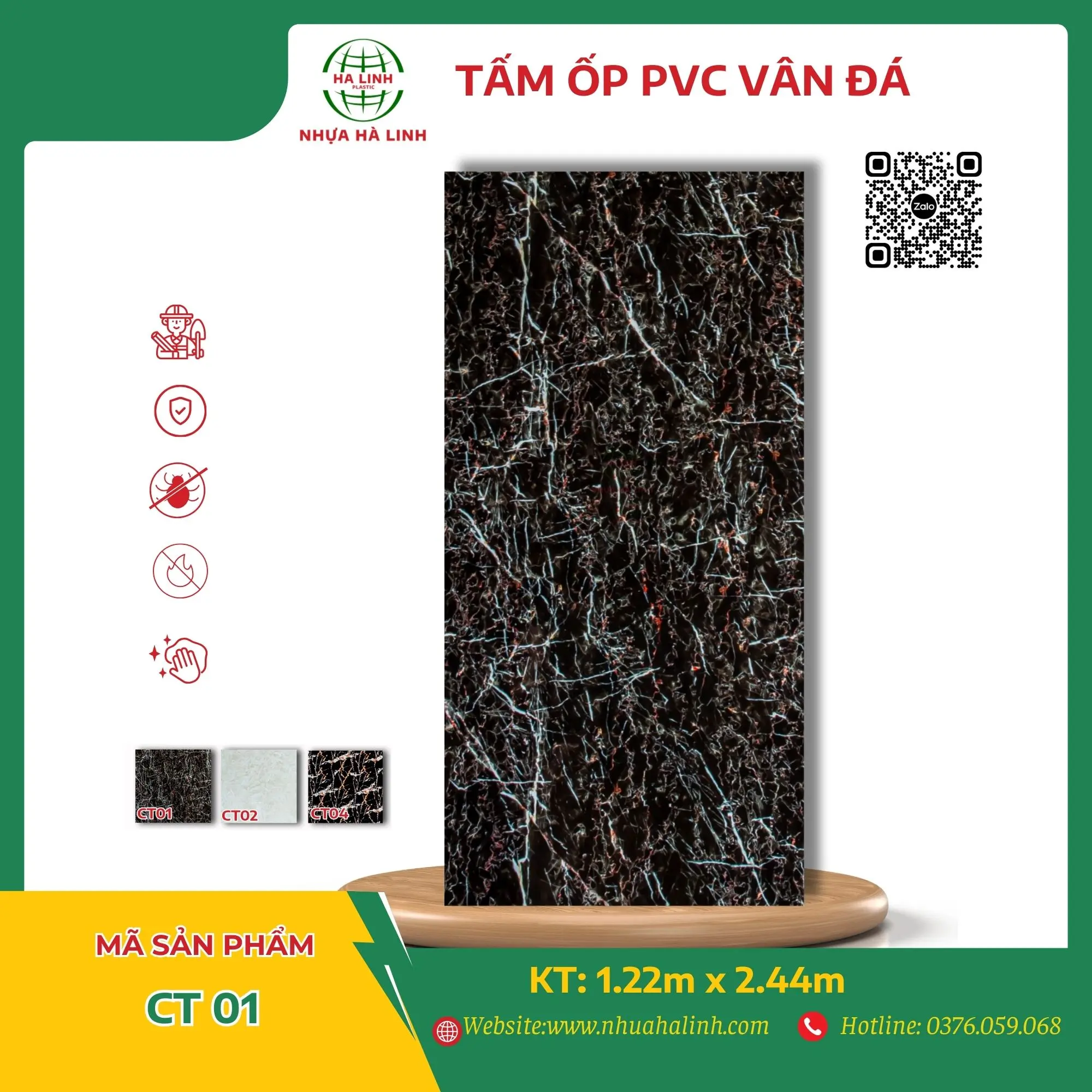 Để hiểu rõ hơn về từng sản phẩm tấm PVC Vân Đá của Công ty TNHH MTV Sản Xuất Và Thương Mại Nhựa Hà Linh và đặc biệt là sản phẩm PVC Vân Đá – CT 01. Quý khách hàng xin vui lòng liên hệ với Nhựa Hà Linh qua: