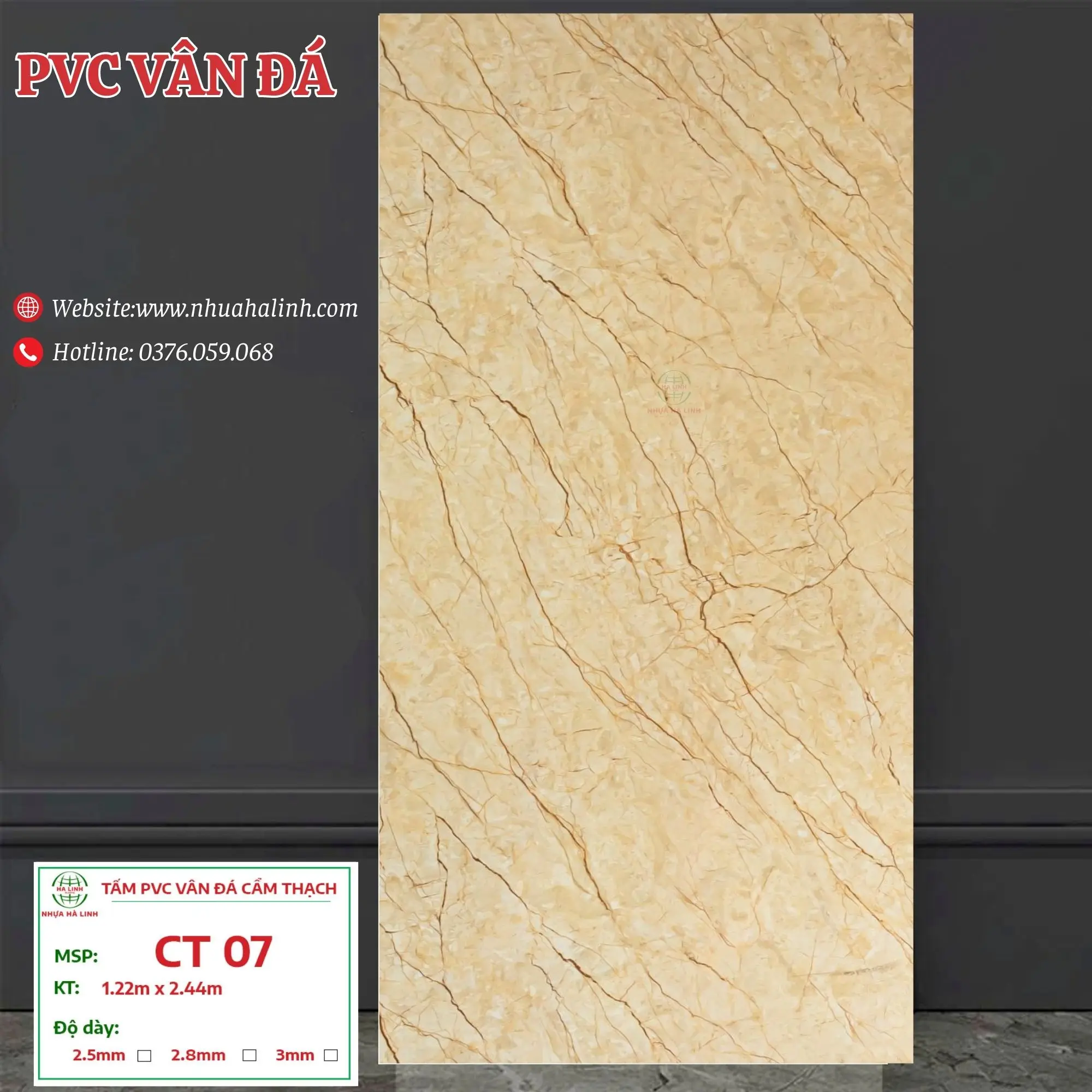 Để hiểu rõ hơn về từng sản phẩm tấm PVC Vân Đá của Công ty TNHH MTV Sản Xuất Và Thương Mại Nhựa Hà Linh và đặc biệt là sản phẩm PVC Vân Đá – CT 07. Quý khách hàng xin vui lòng liên hệ với Nhựa Hà Linh qua: