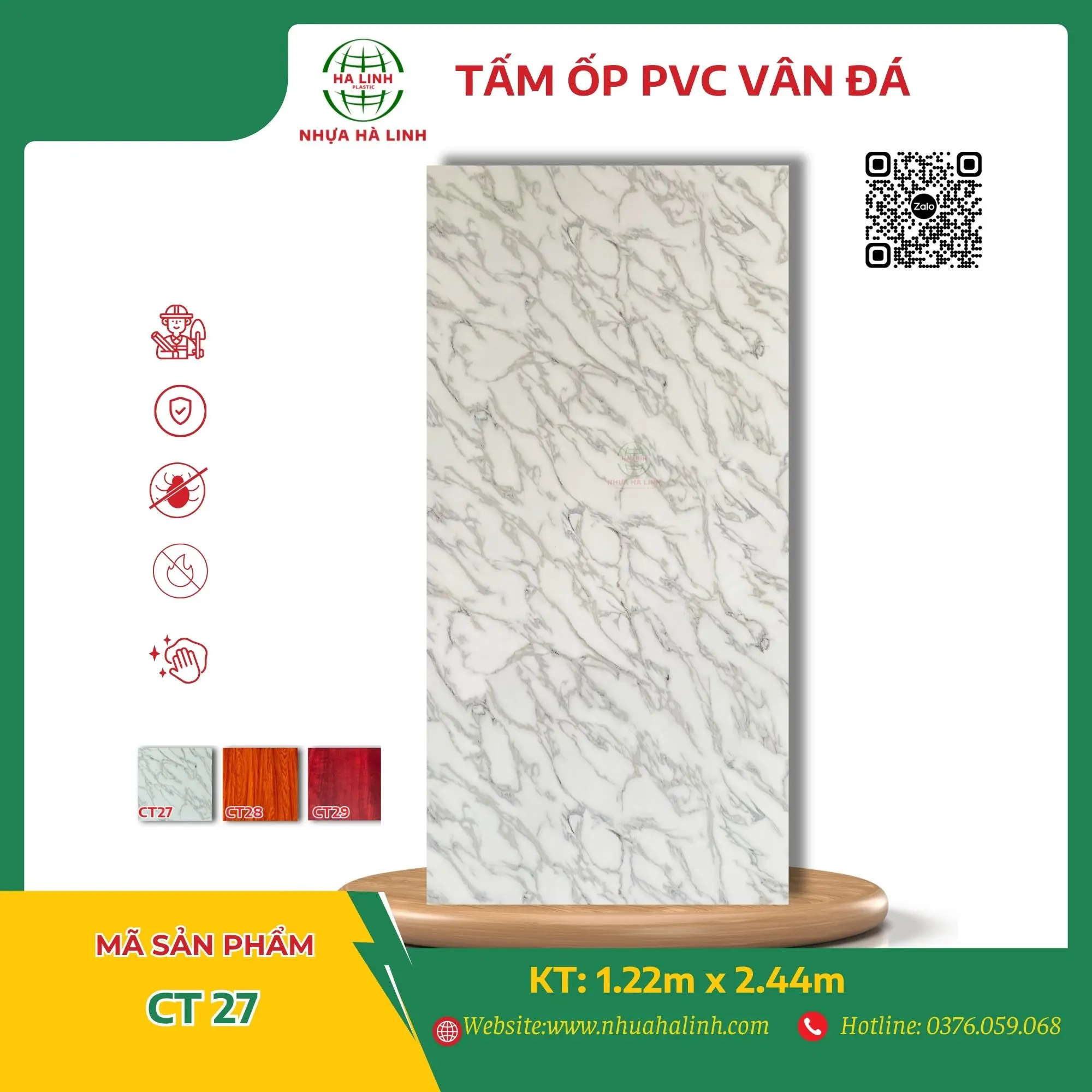 Để hiểu rõ hơn về từng sản phẩm tấm PVC Vân Đá của Công ty TNHH MTV Sản Xuất Và Thương Mại Nhựa Hà Linh và đặc biệt là sản phẩm PVC Vân Đá – CT 27. Quý khách hàng xin vui lòng liên hệ với Nhựa Hà Linh qua: