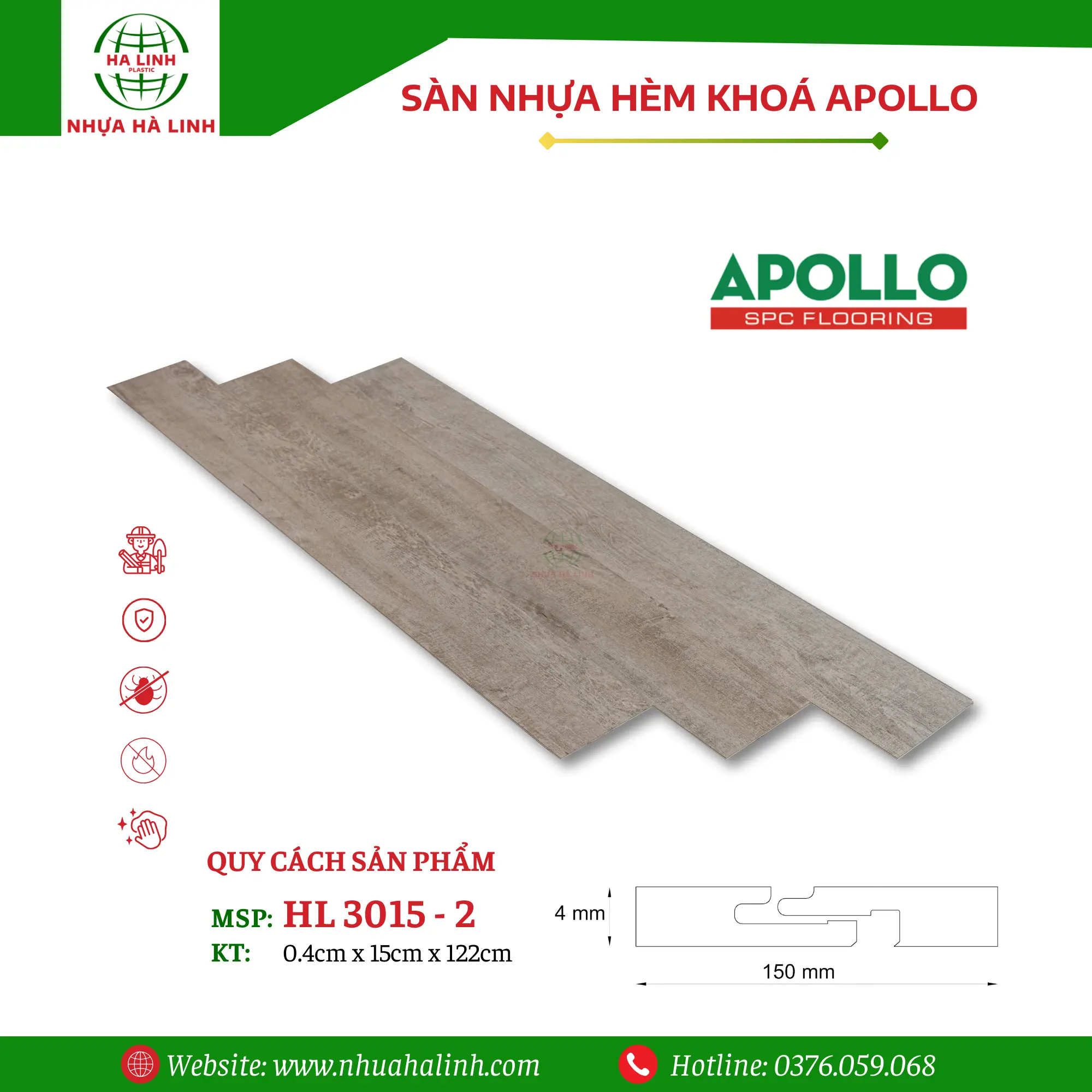 Để hiểu rõ hơn về sản phẩm sàn nhựa hèm khóa thông minh HL 3015 – 2. Quý khách hàng xin vui lòng liên hệ với Nhựa Hà Linh qua: