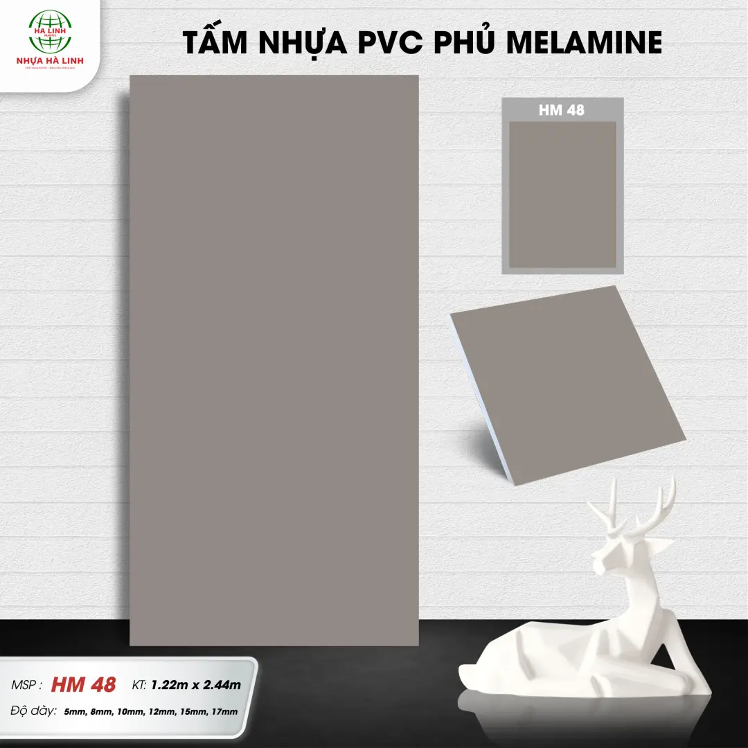 Tấm nhựa PVC phủ Melamine (hay còn gọi là ván nhựa đặc) là dòng vật liệu cao cấp được sản xuất từ hạt nhựa nguyên sinh, tạo nên lớp cốt nhựa đặc cứng chắc. Nhờ công nghệ ép hiện đại kết hợp với lớp keo chuyên dụng, bề mặt tấm được phủ lớp màng vân sắc nét, mang đến vẻ đẹp hiện đại với đa dạng màu sắc và kiểu vân, phù hợp với nhiều không gian nội thất. Đặc biệt sản phẩm được phủ thêm lớp Melamine giúp bề mặt tấm có lớp bóng sang trọng và chống trầy xước hiệu quả.