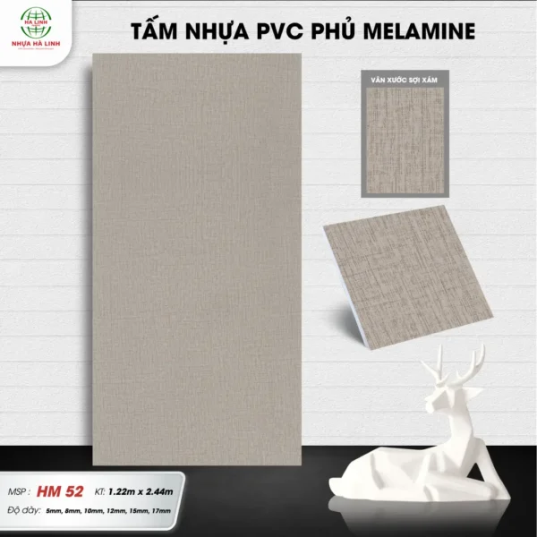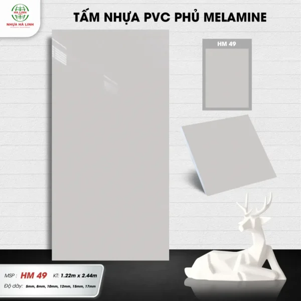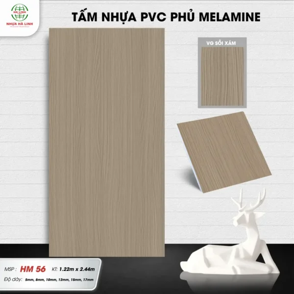 Tấm nhựa PVC phủ Melamine (hay còn gọi là ván nhựa đặc) là dòng vật liệu cao cấp được sản xuất từ hạt nhựa nguyên sinh, tạo nên lớp cốt nhựa đặc cứng chắc. Nhờ công nghệ ép hiện đại kết hợp với lớp keo chuyên dụng, bề mặt tấm được phủ lớp màng vân sắc nét, mang đến vẻ đẹp hiện đại với đa dạng màu sắc và kiểu vân, phù hợp với nhiều không gian nội thất. Đặc biệt sản phẩm được phủ thêm lớp Melamine giúp bề mặt tấm có lớp bóng sang trọng và chống trầy xước hiệu quả.