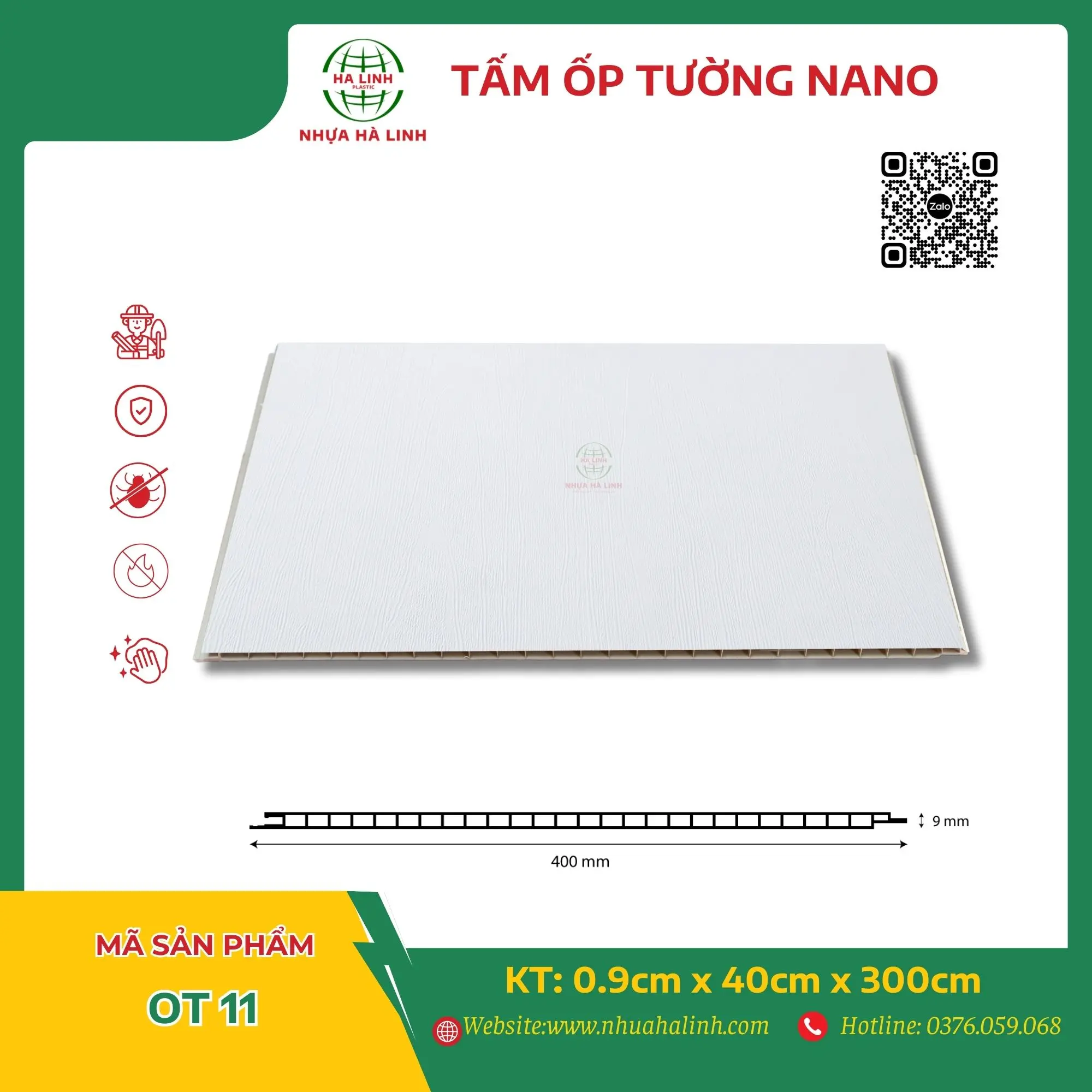 Để hiểu rõ hơn về từng sản phẩm tấm ốp trần tường của Công ty TNHH Sản Xuất Và Thương Mại Nhựa Hà Linh và đặc biệt là sản phẩm tấm ốp tường Nano – OT 11. Quý khách hàng xin vui lòng liên hệ với Nhựa Hà Linh qua: