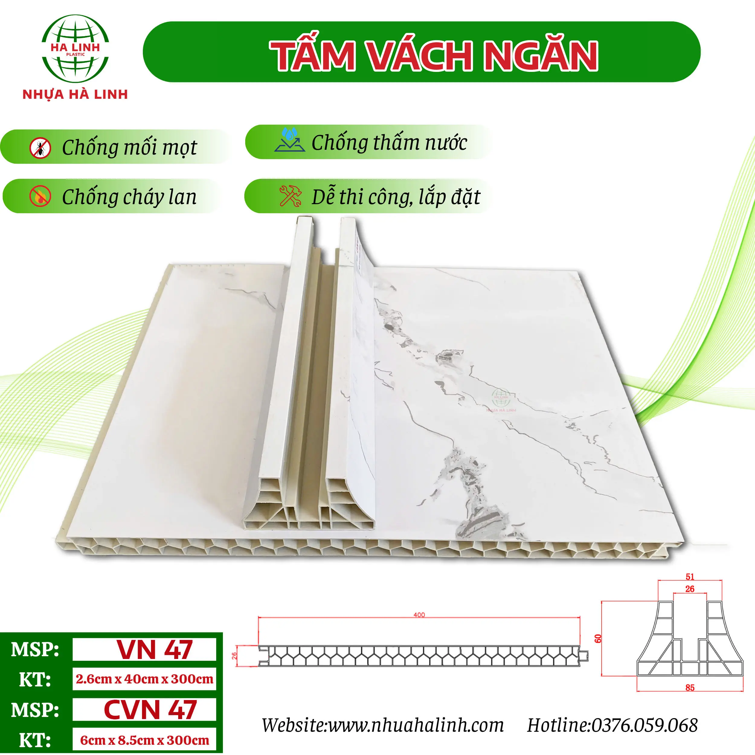 Để hiểu rõ hơn về từng sản phẩm tấm Vách ngăn 2 mặt của Công ty TNHH Sản Xuất Và Thương Mại Nhựa Hà Linh và đặc biệt là sản phẩm tấm Vách ngăn – VN47. Quý khách hàng xin vui lòng liên hệ với Nhựa Hà Linh qua: